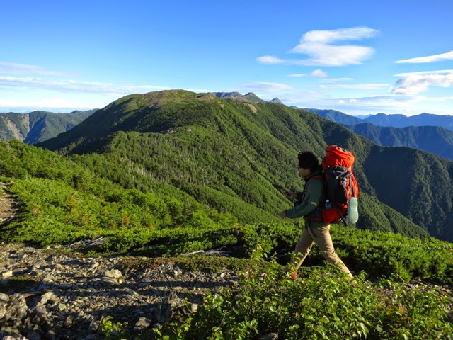 塩見岳と悪沢岳に囲まれた蝙蝠岳(羽を広げれコウモリに見えるよね)